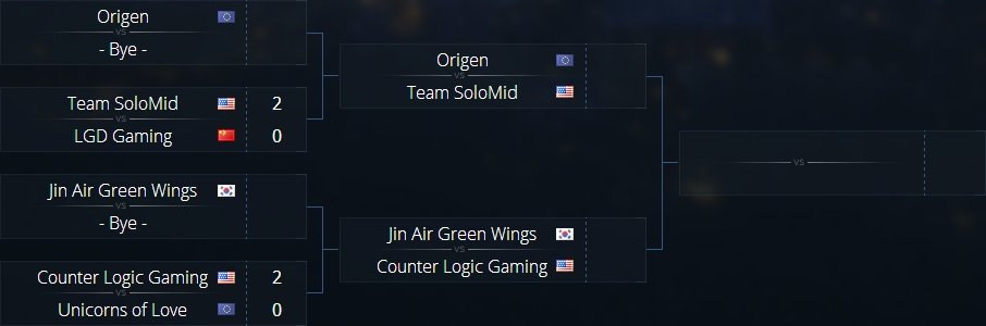 W tym meczu widać było, że skład Unicorns of Love nie jest jeszcze do końca zgrany. Prawie wszystkie zabójstwa europejskiej ekipy wynikały z błędów przeciwników, a sama ekipa Foxa też nie próżnowała w ilości pomyłek. Bardzo dobra synergia graczy Counter Logic Gaming, a w szczególności górnej i środkowej alei oraz dżungli, zapewniły im zwycięstwo już w 33. minucie spotkania.