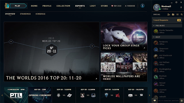 Warto również wspomnieć iż w specjalnej wersji PBE związanej z aktualizacją klienta gry dodano zakładkę e-sportową, którą wypełniono informacjami o zbliżających się Mistrzostwach Świata.