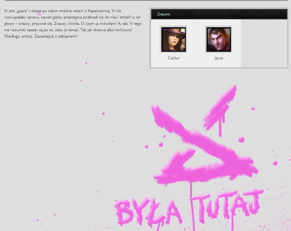 Tym razem Riot wybrał dosyć nietypowy sposób informowania graczy o nowej postaci, ponieważ umieścił nowe detale na… podstronie viVi w Informacjach na grze.
