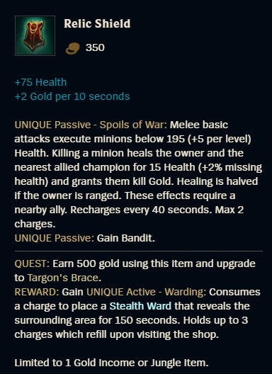 - Receptura została zmieniona na Targon’s Brace + Ruby Crystal + 650 sztuk złota