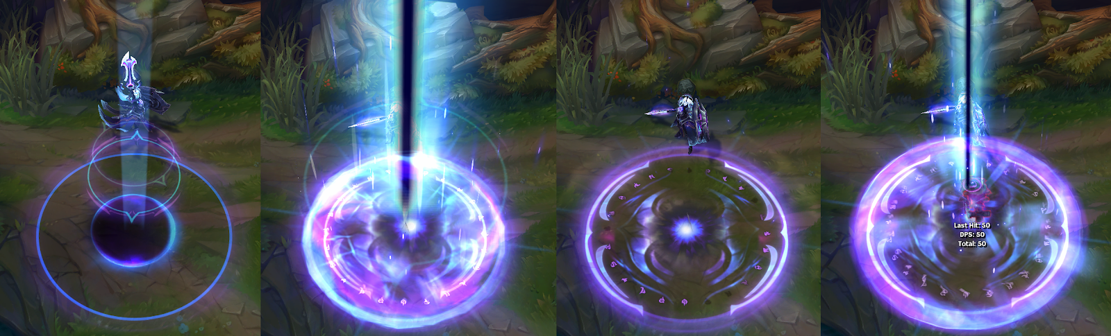 - Ilość obrażeń zadawanych przez tą runę: 50-80 (+8 za każdą duszę, +0.25 bonusowego AD, +0.15 AP) [bazowa wartość obrażeń zależna jest od poziomu postaci]
