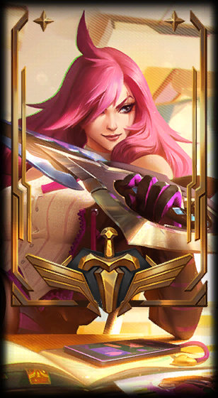 “Katarina is a rough-edged loner who stays far away from the politics of Durandal Academy. A 2nd year student with a chip on her shoulder, she is also a top member of the Assassin Club– the only club on campus allowed to kill opponents in school-sanctioned duels. Few other students ever dare approach her.”