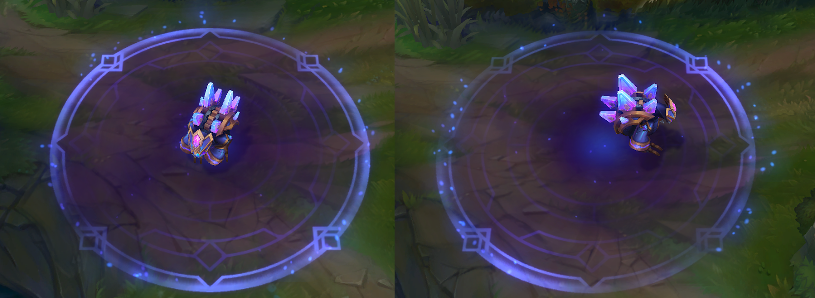 - Pantheon zbiera siły by wyskoczyć w powietrze, a następnie po kilku sekundach uderzyć jak meteor w wybraną lokację. Wszyscy przeciwnicy w linii otrymują 300/500/700 (+1.0 AP) magicznych obrażeń (obrażenia te są zmniejszane do 50% na brzegach działania umiejętności)
