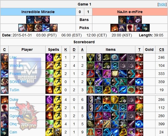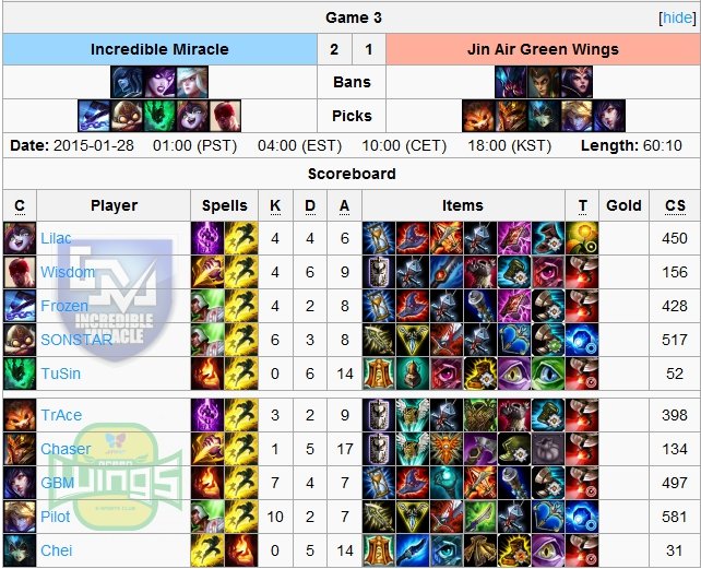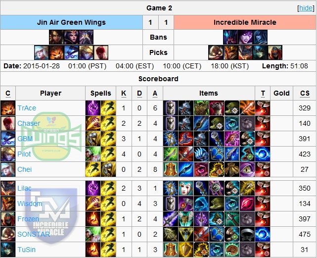 smoków, zabójstw czy minionów, a także wskaźnik drużynowej ilości złota były dla obu stron prawie jednakowe. Jedynym różniącym się aspektem była ilość zniszczonych wież po stronie Incredible Miracle. I właśnie dzięki lepszej kontroli nad tym objectivem beniaminkom udało się zdobyć drugie zwycięstwo w tym splicie.