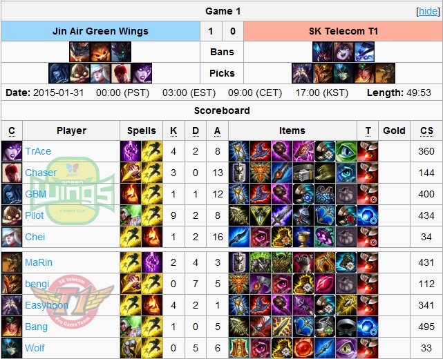 Przedostatni pojedynek tego tygodnia OGN zwyciężyła drużyna Jin Air. Dzięki umiejętnemu rozegraniu początkowej fazy gry udawało im się wyjść na prowadzenie zarówno w ilości zabójstw, jak i pokonanych