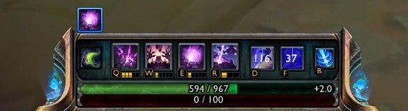 - Ilość obrażeń została zmieniona z 40/70/100/130/180 (+0.4 AP, +4/6/8/10/12% Maksymalnego HP celu) na 80/125/170/215/260 (+0.4 AP)