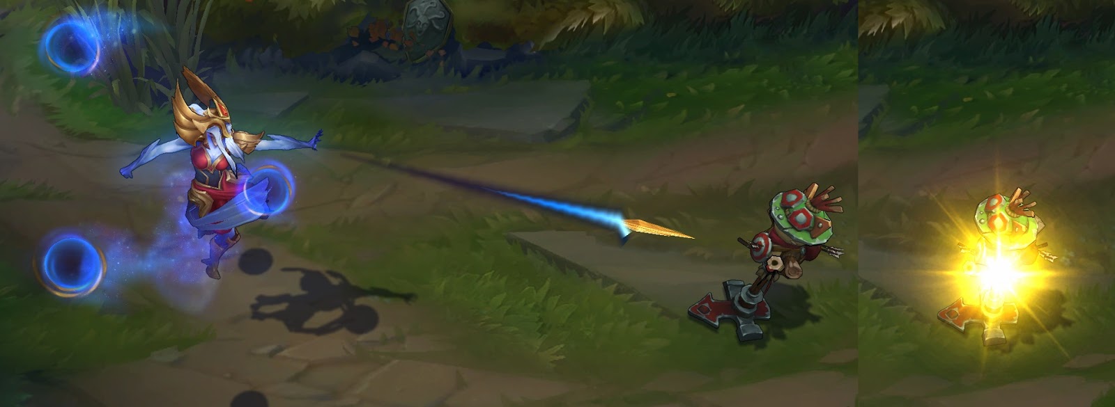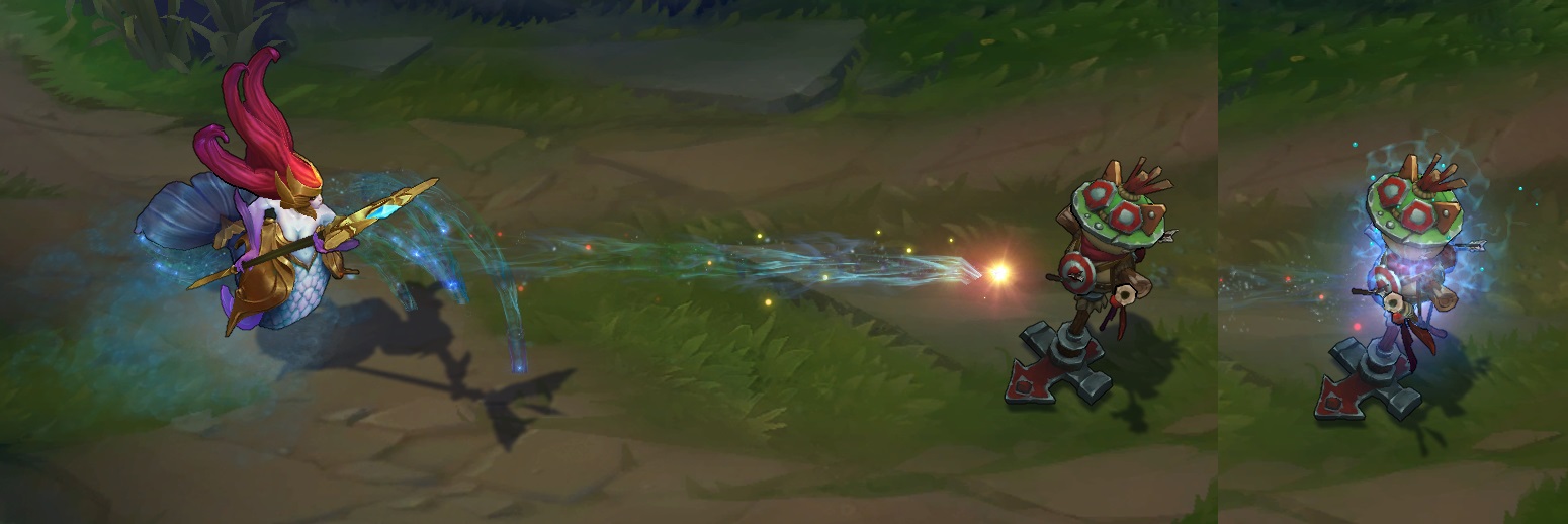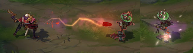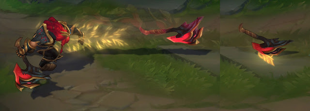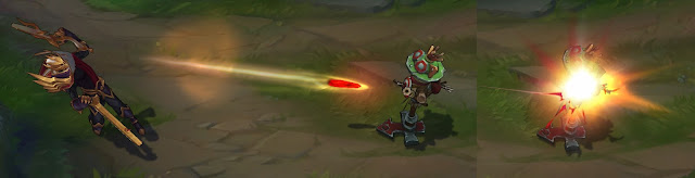 - Ilość zadawanych obrażeń została zmniejszona z 70/95/120/145/170 (+1.2 bonusowego AD) do 60/85/110/135/160 (+1.1 bonusowego AD)