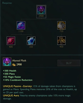 - Dodano nowy Unique Passive: Eternity: “15% obrażeń, które otrzymałeś od wrogich championów jest ci zwracane w formie many. Zużywanie many przywraca HP równe 20% kosztu zaklęcia (maksymalna ilość przywracanego HP to 25 na zaklęcie)”