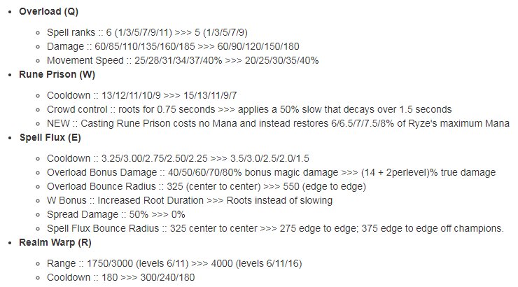 - Wartość efektu przywracającego manę została zmniejszona z 6/7/8/9/10% do 6.6.5/7/7.5/8% maksymalnej many