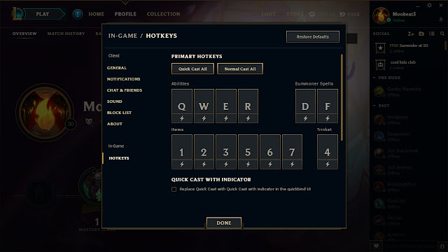 W opcjach specjalnej wersji PBE odpowiedzialnej za testowanie nowego klienta, pojawiła się możliwość włączenia “trybu ziemniaka” (omyłkowo został on udostępniony zbyt wcześnie i obecnie funkcja ta nie działa, jednak domyślnie ma on mieć związek z poprawą działania tego clienta na słabszych komputerach), a także ponownie dodano możliwość edycji hotkeyów używanych w grze